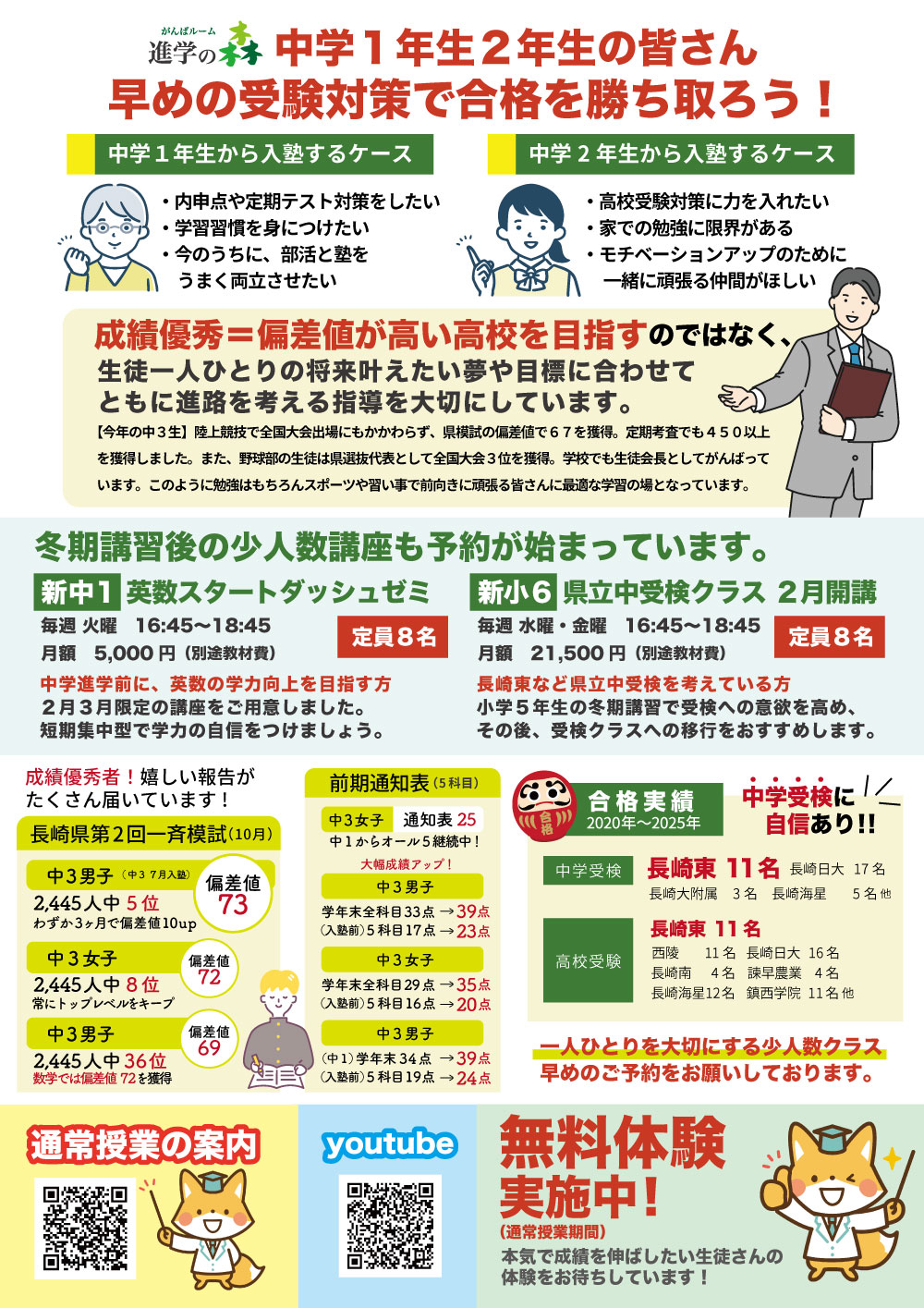 がんばルーム進学の森では、冬期講習生を募集しています。